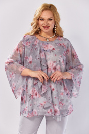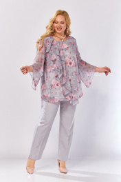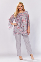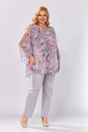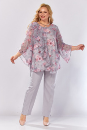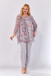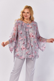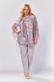 Блуза, брюки Элль-стиль 2460 серый_розовый_принт - фото 20
