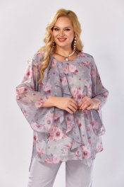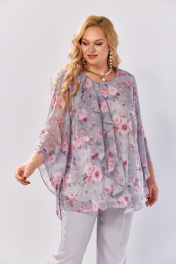 Блуза, брюки Элль-стиль 2460 серый_розовый_принт
