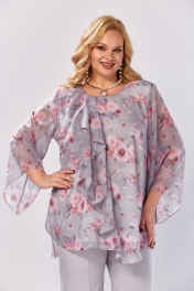Блуза, брюки Элль-стиль 2460 серый_розовый_принт - фото 19