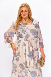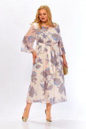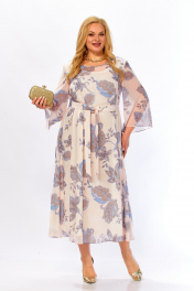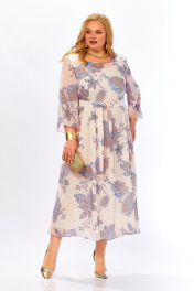 Нежное, воздушное, легкое платье, свободного силуэта , выполнено из струящей ткани, выглядит стильно, деликатно подчеркивает изящность и привлекательность. Модель обеспечивает комфорт и свободу движений, сделает фигуру женственной. Эффектный втачной рукав, расширенный к низу, придает легкость стилю. Округлый вырез горловины. Платье выполнено из шифона, полностью на подкладке. В комплект входит съемный пояс из основной ткани, который прекрасно подчеркнет линию талии.