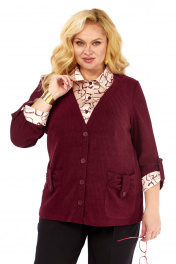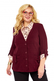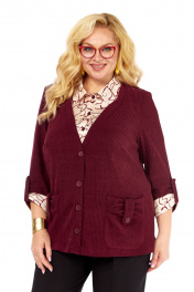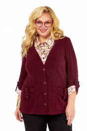 Имитация рубашки под джемпером - это отличный вариант практичной и удобной одежды. Джемпер прямого силуэта, комбинированный, выполнен из мягкого трикотажа и блузочной ткани. Полочка с нагрудными вытачками, накладными фигурными карманами, декорированной патой. Стояче-отложной воротник блузки хорошо смотрится с V-образным вырезом горловины. Рукав втачной, одношовный, с отложной манжетой из отделочной ткани. Пата на рукаве позволяет регулировать его длину.