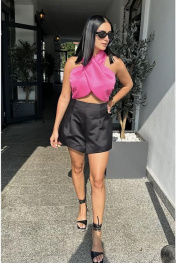 Топ и шорты из атласа с х/б подкладкой для Лета ENZA 908 розово_черный