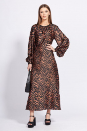 Платье из атласа с анималистичным принтом и сборкой EOLA 2287 корица_рисунок