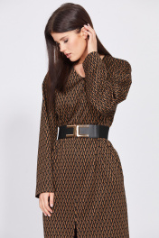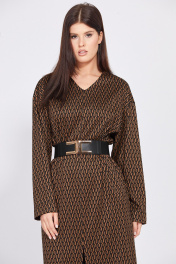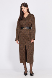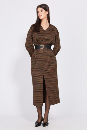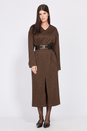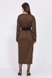 Длинное трикотажное платье миди с карманами и ремнем EOLA 2497.1 рыжий_ рисунок