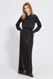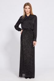 Юбка прямого силуэта, длиной в пол, из трикотажного полотна с пайетками. Сзади в среднем шве шлица. Юбка на отлетной по низу подкладке. Верх юбки на цельнокроенном поясе с эластичной тесьмой. Длина юбки: 44-48 - 114 см. 50-54 -115 см. 44 46 48 50 52 54 ЮБКА Длина по переду 114 114 114 115 115 115 Объем по талии 68/94 72/98 76/102 80/106 84/110 88/114 Объем по бедрам 94 98 102 106 110 114 Объем по низу 94 98 102 106 110 114