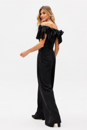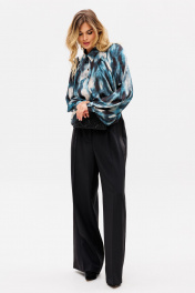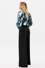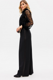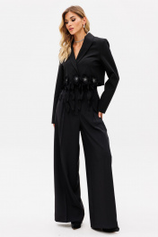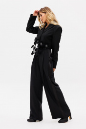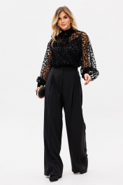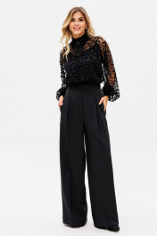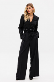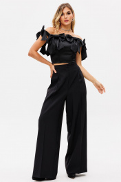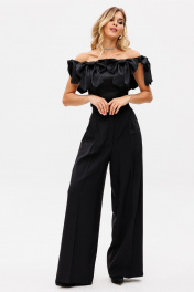 Палаццо из костюмной ткани с лампасами из атласа для нарядных образов EOLA 2530 черный