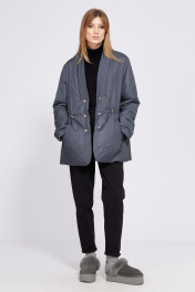 Куртка выполнена из плащевой ткани, утепленной изософтом. Куртка Х-образного силуэта, длиной до линии бедра. Спереди прорезные карманы и центральная застежка на кнопках и планка переходящая в воротник стойку. Спинка со средним швом. По линии талии кулиса с эластичной тесьмой. Плечевой шов спущен. Рукава втачной, двухшовный. Куртка декорирована металлической нашивкой сзади на стойке. Куртка на притачной по низу подкладке. Температурный режим: от +5 до -5 С. Длина куртки: р. 42-46 - 77,5 см, р. 48-52 - 78, 5 см. Длина рукава: р. 42-46 - 64 см, р. 48-52 - 65 см 42 44 46 48 50 52 Длина по центру спинки 77,5 77,5 77,5 78,5 78,5 78,5 Длина рукава 64 64 64 65 65 65 Объем по груди 108 112 116 120 124 128 Объем по талии 98 102 106 110 114 118 Объем по бедрам 120 124 128 132 136 140 Объем по низу 120 124 128 132 136 140 Объем рукава вверху 36 38 40 40 40 42