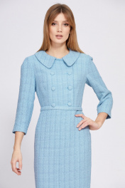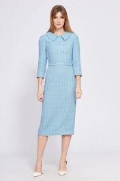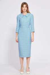 Платье выполнено из твида. Платье приталленого силуэта, отрезное по линии талии, длиной миди, спереди имитация двубортной застежки на пуговицы. Застежка на потайную молнию в среднем шве спинки. Плечевой шов заужен. Рукав втачного покроя, одношовный, длиной 3/4. Разрез сзади в среднем шве. Платье на отлетной по низу подкладке. В комплект входит ремень из основной ткани, застегивающийся сзади на 3 пробивные кнопки. Длина платья: р. 44-48 - 116 см, р. 50-54 - 117 см. Длина рукава: р. 44-48 - 47 см, р. 50-54 - 48 см. Гарантийный срок не установлен Гост 25294-2003 44 46 48 50 52 54 Длина по центру спинки 116,5 116,5 116,5 117,5 117,5 117,5 Длина рукава 48 48 48 49 49 49 Объем по груди 92 96 100 104 108 112 Объем по талии 72 76 80 84 88 92 Объем по бедрам 96 100 104 108 112 116 Объем по низу 80 84 88 92 96 100 Объем рукава вверху 32 34 36 36 38 40 Объем рукава внизу 25 25 25 27 27 27