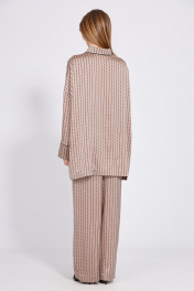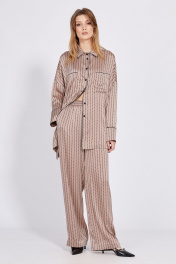Бежевый комплект из атласа: блуза и прямые брюки EOLA 2594 бежевый_принт