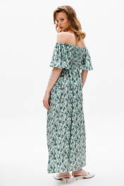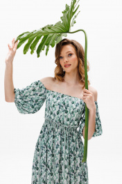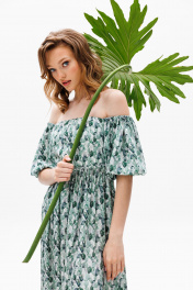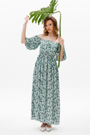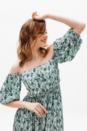 Платье выполнено из плательной ткани. Платье Х-образного силуэта. Центральная часть спинки собрана на венгерку. Рукав длиной до линии локтя, одношовный, расширенный. Верх и низ рукава обработаны эластичной тесьмой. Юбка расширена к низу. В боковых швах обработаны карманы. Юбка настрочена на лиф. Лиф платья на подкладке. Длина платья: 122 с Длина рукава: 36 с Гарантийный срок не установлен ГОСТ 25294-2003