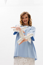 Голубая футболка крупного трикотажа oversize EOLA 2645 голубой