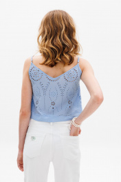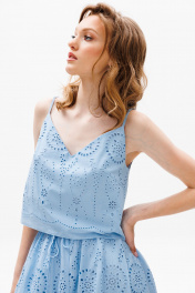 Летний хлопковый топ с вышивкой и V-образным вырезом EOLA 2654.1 голубой