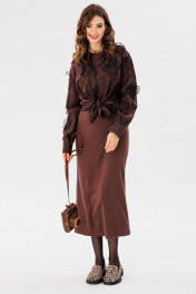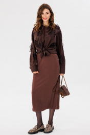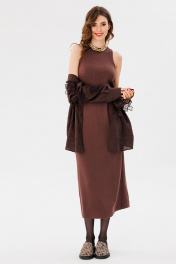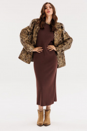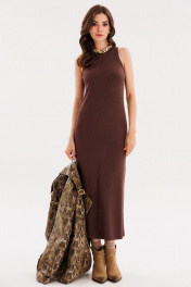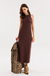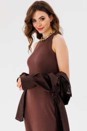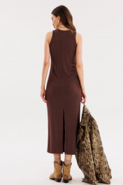 Платье приталенное из трикотажного рубчика с разрезом EOLA 2666 коричневый