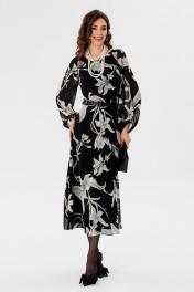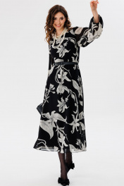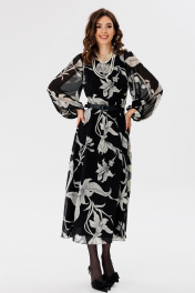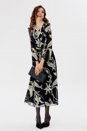 Платье из шифона с принтом, миди с втачным рукавом EOLA 2716 черный_принт