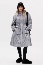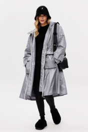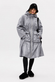 Пальто выполнено из плащевой ткани, утепленное Isosoft. Пальто Х-образного силуэта, длиной ниже линии колена. Спереди накладные карманы с клапанами и центральная застежка на молнию. Спинка цельная. По линии талии кулиса с эластичной тесьмой. Горловина округлой формы с капюшоном. Плечевой шов удлинен. Рукав рубашечного покроя, трехшовный. По низу рукава и краю капюшона эластичная тесьма с фиксаторами. Пальто на отлетной по низу подкладке из основной ткани стеганой с утеплителем. Температурный режим от +10 до 0С. Длина: р. 44-54 - 106 см. Длина рукава: р. 44-48 - 74 см, р. 50-54 - 75 см. 44 46 48 50 52 54 Длина по центру спинки 106 106 106 106 106 106 Длина рукава от горловины 74 74 74 75 75 75 Объем по груди 136 140 144 148 152 156 Объем по талии 136 140 144 148 152 156 Объем по низу 186 190 194 198 202 206 Объем рукава вверху 50 52 54 54 56 58 Объем рукава внизу 32 32 32 34 34 34