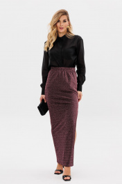 Блузка выполнена из блузочной ткани. Блузка прямого силуэта, длиной до линии бедер. Спереди центральная застежка с потайной планкой на пуговицы. Спинка цельная. Воротник стояче-отложной. Рукав втачной, одношовный. Низ рукава на притачной манжете. Длина блузки: р. 42-46 - 69 см, р. 48-52 - 70,5 см. Длина рукава: р. 42-46 - 61 см, р. 48-52 - 62 см. 42 44 46 48 50 52 Длина по центру спинки 69 69 69 70,5 70,5 70,5 Длина рукава 61 61 61 62 62 62 Объем по груди 98 102 106 110 114 118 Объем по талии 98 102 106 110 114 118 Объем по бедрам 102 106 110 114 118 122 Объем по низу 102 106 110 114 118 122 Объем рукава вверху 32 34 36 36 38 40 Объем рукава внизу 32 34 36 36 38 40