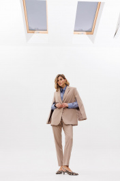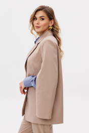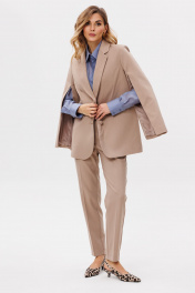 Жакет выполнен из костюмной ткани. Жакет прямого силуэта, длиной до линии бедер. Спереди застежка на пуговицы и прорезные карманы. Жакет по низу закругленной формы. На спинке средний шов. Воротник пиджачного типа. Рукав втачной, двухшовный, декорирован потайной молнией. Жакет на притачной по низу подкладке. Длина жакет: р. 44-48 - 74 см. Длина рукава: р. 44-48 - 62, 5 см, р. 50-54 - 63,5 см. 44 46 48 50 52 54 Длина по центру спинки 74 74 74 76 76 76 Длина рукава 62,5 62,5 62,5 62,5 62,5 62,5 Объем по груди 100 104 108 112 116 120 Объем по талии 100 104 108 112 116 120 Объем по низу 106 110 114 118 122 126 Объем рукава вверху 34 36 38 38 40 42 Объем рукава внизу 26 26 26 28 28 28
