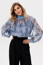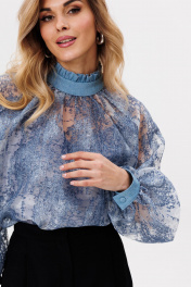 Блуза из органзы с рюшами и съемным топом EOLA 2810 голубой