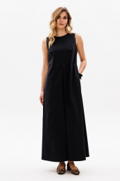 Платье выполнено из плательно-блузочной ткани. Платье А-образного силуэта, длиной миди. Горловина округлой формы. На спинке средний шов с застежкой на молнию с металлическими звеньями. Плечевой шов заужен. Пройма квадратной формы. Юбка расширена к низу. Юбка цельная со встречными складками по центру с обеих сторон. В боковых швах карманы. Длина платья: р. 44-48 - 135 см, р. 50-54 - 136,5 см. 44 46 48 50 52 54 Длина по центру спинки 135 135 135 136,5 136,5 136,5 Длина рукава Объем по груди 96 100 104 108 112 116 Объем по талии 90 94 98 102 106 110 Объем по бедрам 108 112 116 120 124 128 Объем по низу 140 144 148 152 156 160