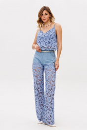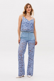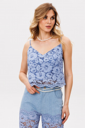 Топ выполнен из гипюра. Топ прямого силуэта, длиной до линии талии. Горловина переда V-образной формы. Перед на отлетной по низу подкладке. Топ на регулируемых бретелях. По низу топа фестоны. Длина: 26 см.