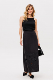 Топ выполнен из трикотажа в рубчик. Топ приталенный, длиной выше линии бедер. Перед и спинка цельные. Горловина переда и спинки окантованы. Длина: р. 42-46 - 48 см, р. 48-52 - 49,5 см.