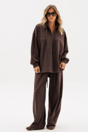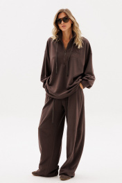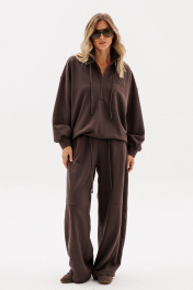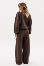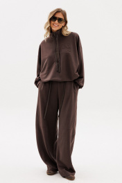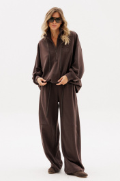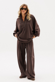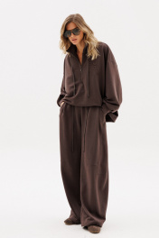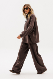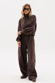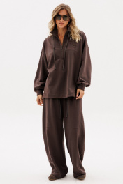 Комплект: джемпер+брюки. Комплект выполнен из трикотажного полотна. Джемпер прямого силуэта, покроя "oversize" длиной до линии бедер. Спереди застежка на молнию. Воротник-стойка. Плечевой шов удлинен. Рукав рубашечного покроя, одношовный, расширенный и присборенный к низу. Низ рукава на притачной манжете. Низ джемпера на эластичной тесьме с фиксаторами. Джемпер декорирован вышивкой по переду. Брюки прямого силуэта, длиной в пол, на притачном поясе с эластичной тесьмой. Спереди боковые карманы с фигурным входом, петли в поясе, в которые втянут шнур из основной ткани, коленные вытачки, складки. Сзади справа накладной карман. Длина джемпера: р. 44-48 - 68,5 см, р. 50-54 - 70 см. Длина рукава от горловины: р. 44-48 - 77,5 см, р. 50-54 - 78,5 см. Длина брюк: р. 44-48 - 107 см, р. 50-54 - 108,5 см. Комплект м. 2895 Брюки Длина сбоку без пояса 107 107 107 108,5 108,5 108,5 Объем по талии 68/104 72/108 76/112 80/116 84/120 88/124 Объем по бедрам 116 120 124 128 132 136 Ширина пояса 5 5 5 5 5 5 джемпер 44 46 48 50 52 54 Длина по центру спинки 68,5 68,5 68,5 70 70 70 Длина рукава от горловины 77,5 77,5 77,5 78,5 78,5 78,5 Объем по груди 132 136 140 144 148 152 Объем по талии 126 130 134 138 142 146 Объем по низу 120 124 128 132 136 140 Объем рукава вверху 56 58 60 60 62 64 Объем рукава внизу 20 20 20 21,5 21,5 21,5