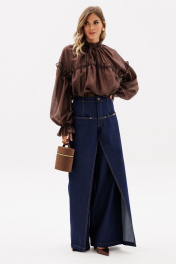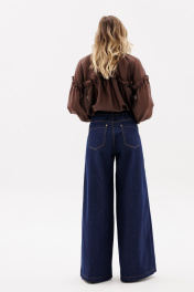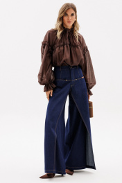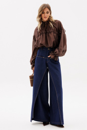 Брюки выполнены из плотного джинса. Брюки на притачном поясе, длиной до пола, расширенные к низу. Спереди верхние отлетные части, боковые карманы с фигурным входом. Застежка на пуговицу и молнию с гульфиком. На задних частях кокетки и накладные карманы. По переду брюки декорированы брендированной нашивкой из натуральной кожи. БРЮКИ м. 2898 44 46 48 50 52 54 Длина сбоку 110 110 110 111,5 111,5 111,5 Объем по талии 64-78 68/82 72/86 76/90 80/94 84/98 Объем по бедрам 106 110 114 118 122 126 Ширина пояса 4 4 4 4 4 4