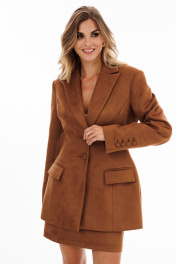 Жакет выполнине из плотной искуственной замши. Жакет Х-обраного силуэта, длиной ниже линии бедер. Спереди рельефы от проймы до низа, прорезные карманы с клапанами и центральная бортовая застежка на пуговицы. Воротник пиджачного типа. На спинке средний шов. Плечевой шов удлинен. Рукав втачной, двухшовный, по низу заднего шва шлица с застежкой на пуговицы. Жакет на притачной по низу подкладке. Длина жакета: р. 42-46 - 76 см. Длина рукава: р. 42-46 - 64 см. ЖАКЕТ м. 2923 42 44 46 Длина по центру спинки 76 76 76 Длина рукава 64 64 64 Объем по груди 92 96 100 Объем по талии 71 75 79 Объем по низу 120 124 128 Объем рукава вверху 34 36 38 Объем рукава внизу 27 27 27
