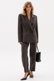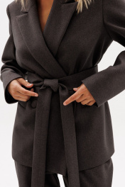Жакет выполнен из костюмной ткани. Жакет прямого силуэта длиной до линии бедер. Спереди лацканы. Застежка двубортная на обтяжные пуговицы. Воротник пиджачного типа. Спинка со средним швом. Рукав втачного, двухшовный. Жакет на притачной по низу подкладке. В комплект входит съемный пояс из основной ткани. Длина жакета: р. 44-48 - 70 см, р. 50-54 - 71,5 см. Длина рукава: р. 44-48 - 63 см, р. 50-54 - 64 см 44 46 48 50 52 54 Длина по центру спинки 70 70 70 71,5 71,5 71,5 Длина рукава 63 63 63 64 64 64 Объем по груди 112 116 120 124 128 132 Объем по талии 106 110 114 118 122 126 Объем по низу 107 111 115 119 123 127 Объем рукава вверху 36 38 40 40 42 44 Объем рукава внизу 28 28 28 29,5 29,5 29,5