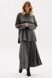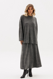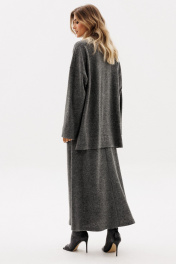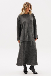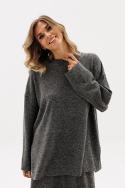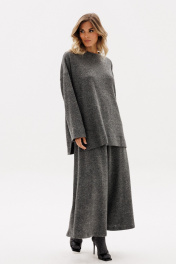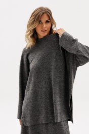 Джемпер выполнен из трикотажного полотна. Джемпер прямого силуэта, длиной ниже линии бедер. Перед и спинка цельные. Горловина округлой формы, обработана широкой бейкой. Плечевой шов удлинен. Рукав рубашечного покроя, одношовный. В боковых швах разрезы. Длина джемпера: р. 44-48 - 75 см, р. 50-54 - 76,5 см. Длина рукава от горловины: р. 44-48 - 74 см, р. 50-54 - 75 см 44 46 48 50 52 54 Длина по центру спинки 75 75 75 76,5 76,5 76,5 Длина рукава от горловины 74 74 74 75 75 75 Объем по груди 132 136 14 144 148 152 Объем по талии 124 128 132 136 140 144 Объем по низу 112 116 120 124 128 132 Объем рукава вверху 41 43 45 45 47 49 Объем рукава внизу 28 28 28 29,5 29,5 29,5