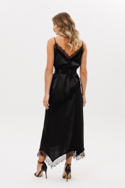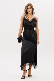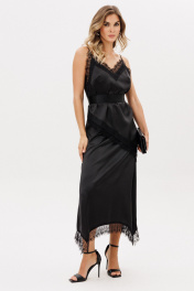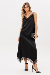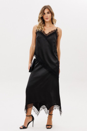 Топ выполнен из плотного атласа. Топ прямого силуэта длиной до линии бедер. Вырез V-образной формы формы. Топ декорирован тесьмой-кружевом по проймам, низу и разрезу слева . Топ на нерегулируемых бретелях. Длина топа: р. 44-48 - 43 см, р. 50-54 - 45 см. 44 46 48 50 52 54 Длина по центру спинки 43 43 43 45 45 45 Объем по груди 98 102 106 110 114 118 Объем по талии 100 104 108 112 116 120