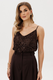 Топ выполнен из сетки с вышивкой пайетками. Топ прямого силуэта, длиной выше линии бедер. Топ на отлетной по низу трикотажной подкладке. Бретели регулируемые по длине. Длина топа: р. 44-48 -47 см, р. 50-54 - 49 см. Гарантийный срок не установлен ГОСТ 25294 - 2003