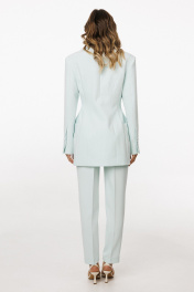 Брюки выполнены из костюмной ткани. Брюки зауженные к низу, длиной 7/8, на притачном поясе. Спереди боковые карманы с наклонным входом и застежка на молнию. Передние и задние части брюк заутюжены на кант. Длина брюк - 103 см. БРЮКИ м. 3047 42 44 46 Длина сбоку с поясом 100,5 100,5 100,5 Объем по талии 68/74 72/78 76/82 Объем по бедрам 95 99 103 Ширина пояса 3,5 3,5 3,5