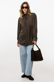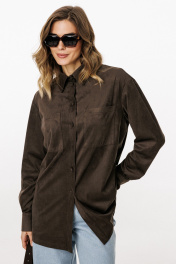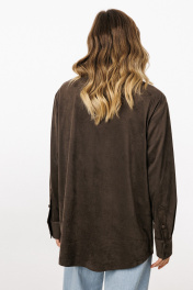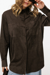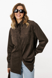 Блузка выполнена из тонкой искусственной замши. Блузка прямого силуэта, длиной до линии бедер. Спереди нагрудные карманы и центральная застежка с планкой на пуговицы. Спинка цельная. Воротник стояче-отложной с отрезной стойкой. Рукав втачной, одношовный. Низ рукава на притачной манжете с застежкой на пуговицы. Низ блузки фигурной формы. Длина блузки: р. 44-48 - 76,5 см, р. 50-54 - 78 см. Длина рукава от горловины: р. 44-48 - 76 см, р. 50-54 - 77 см. БЛУЗКА м. 3051 44 46 48 50 52 54 Длина по центру спинки 76,5 76,5 76,5 78 78 78 Длина рукава от горловины 76 76 76 77 77 77 Объем по груди 112 116 12 124 128 132 Объем по талии 114 118 122 126 130 134 Объем по низу 114 118 122 126 130 134 Объем рукава вверху 37 39 41 41 43 45