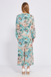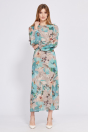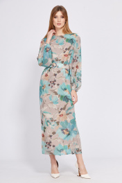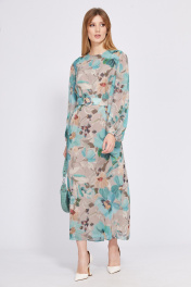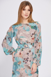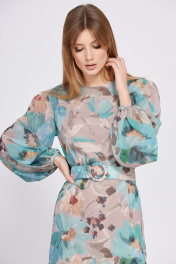 Платье из шифона с принтом, полуприлегающего силуэта, с ремнем EOLA 2561 бежево-мятный