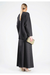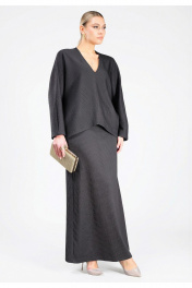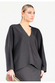 Стильный джемпер с V-образным вырезом — универсальный элемент гардероба на каждый день. Модель выполнена из мягкого трикотажа с легкой текстурой, приятного к телу и комфортного в носке. Свободный крой и удлинённые рукава создают расслабленный силуэт, а V-образный вырез визуально вытягивает шею и добавляет женственности. Глубокий черный цвет легко сочетается с юбками, брюками и джинсами, позволяя создавать как офисные, так и вечерние образы. Добавьте в свой гардероб базовую вещь, которая всегда будет актуальна.