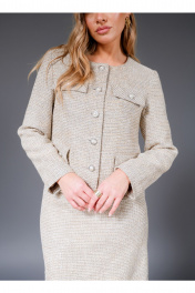 Жакет женский, полуприлегающего силуэта с круглым вырезом горловины. Застежка выполнена на петли и пуговицы. Втачной рукав. По переду присутствуют декоративные клапоны. Жакет выполнен на подкладке.