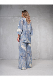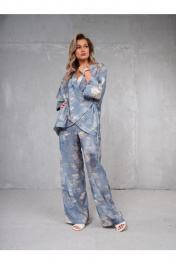 Брюки широкие, прямые, Пояс на резинке, карманы в боковом шве. Ткань с современным дизайном выделит вас из толпы и подчеркнет вашу индивидуальность._x000D_