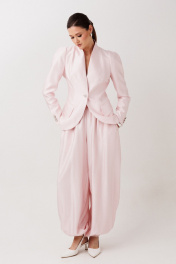 Жакет приталенный ERTANNO — изящная модель с выразительной архитектурой силуэта. Приталенный крой малого объёма мягко подчёркивает фигуру, создавая элегантный и современный образ. Рельефные линии спереди и спинке формируют аккуратную посадку, а расширенная линия плеч добавляет силуэту уверенности и стильного характера. Длинные рукава полуреглан с изящной шлицей и пуговицами по низу делают модель особенно утончённой. Цельнокроеный воротник-стойка придаёт жакету лаконичность и благородную строгость, а центральная застёжка на пуговицу завершает образ аккуратным акцентом. Жакет на подкладке идеально сидит по фигуре и легко вписывается как в деловые, так и в более элегантные повседневные образы.На модели размер 44 Параметры модели: рост-175см, 82-67-91