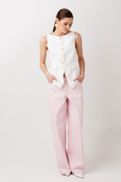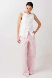 Брюки ERTANNO — это идеальное сочетание свободы, комфорта и современного стиля. Лёгкий свободный силуэт Прямые свободные джинсы выполнены в нежном розовом оттенке — свежем и очень стильном цвете, который делает образ лёгким, современным и по-настоящему модным. Такой оттенок выглядит мягко и утончённо, добавляя повседневным образам нотку женственности и актуальности. Модель имеет прямой свободный крой, который красиво сидит по фигуре и дарит комфорт в движении. Джинсы дополнены карманами на передних половинках и фигурными накладными карманами на задних половинках. Пояс со шлёвками и застёжка на молнию с пуговицей делают посадку удобной и аккуратной. Верхний край пояса располагается ниже естественной линии талии на 4,0 см. Это трендовая модель джинсов, которая легко впишется в гардероб и будет отлично сочетаться с жакетами, рубашками, футболками и блузками, позволяя создавать стильные образы на каждый день. Длина вместе с поясом -109 см, по внутреннему шву-84 см. На модели размер 44 Параметры модели: рост-175см, 82-67-91