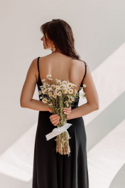 Платье на регулируемых бретелях от ERTANNO идеально подойдет для романтических свиданий и вечерних мероприятий. Оно отрезное по талии, облегает в верхней части по фигуре и имеет открытую спинку. Свободная летящая юбка добавляет образу легкости и женственности. Платье выполнено из 100% вискозы, которая струится и выглядит элегантно, а подкладка ( до талии) из 100% хлопка обеспечивает комфорт. Черный цвет делает это платье идеальным для любого торжественного случая.Параметры модели: рост-173 см, грудь-97 см, талия-76 см, бедра- 97 см.На модели размер 44
