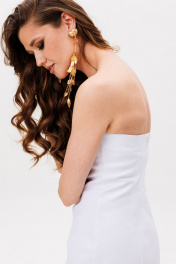 Силуэтное платье из плотной джинсовой ткани Tiffani идеально подчеркнет вашу фигуру. Платье малого объёма, прилегающего силуэта, длиной выше колена, с открытыми плечами, без подкладки. На переде две пары вертикальных рельефов. Спинка со средним швом, с двумя вертикальными рельефами и разрезом. Застежка в среднем шве спинки на потайную молнию. По спинке линия расположена ниже уровня лопаток. В ткани присутствует эластан, благодаря которому в платье очень комфортно. Подойдет для свидания, встреч с друзьями, торжественных мероприятий. Ткань плотная. Платье на рост 164-170см. Параметры модели: рост-175 см, грудь-85 см, талия-70 см,бедра-91 см На модели размер 44 Длина платья по боковому шву: 64 см