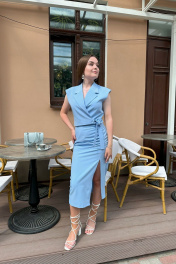 Голубая миди-юбка с разрезом и эластичным поясом ERTANNO 2302 голубой