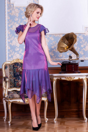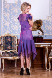 Фиолетовое платье с ассиметричным воланом и люрексом Euromoda 192/1
