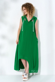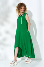 Зеленый сарафан с разрезами и капюшоном из текстиля Euromoda 513