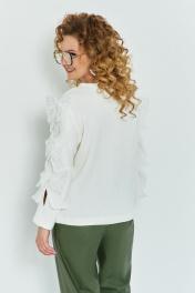 Джемпер женский свободного кроя , выполнен из мягкого трикотажа "ЕвроАнгора". Горловина округлая, рукав втачной, длинный. По длине рукава выполнен разрез с декоративными настрочными элементами "Бант"