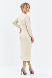 - ОписаниеПлатье выполнено из мягкого трикотажного полотна "евро-ангора", изделие полуприлегающего силуэта. Горловина ассиметричная . Рукав длинный- приспущенный с декоративным вырезом на одном плече. По спинке изделия расположены таллиевые выточки.