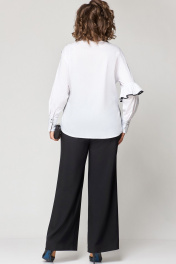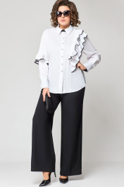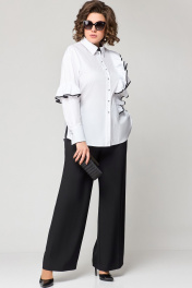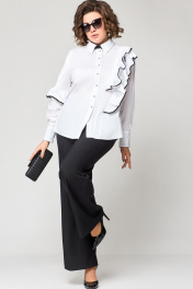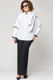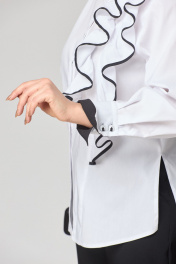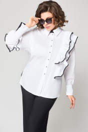 Белая блузка из хлопка с асимметричным подрезом и рюшей EVA GRANT 7136-1 белый+черный
