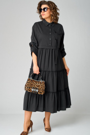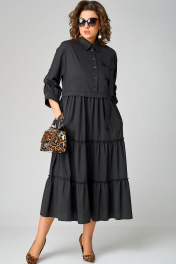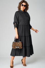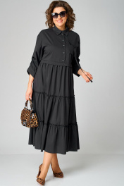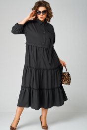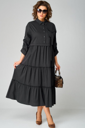 Черное платье с воротником стойка и асимметричной застежкой из текстиля EVA GRANT 7176В черный - фото 1