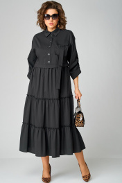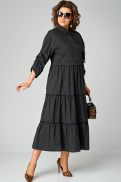 Черное платье с воротником стойка и асимметричной застежкой из текстиля EVA GRANT 7176В черный